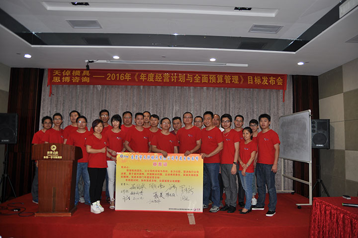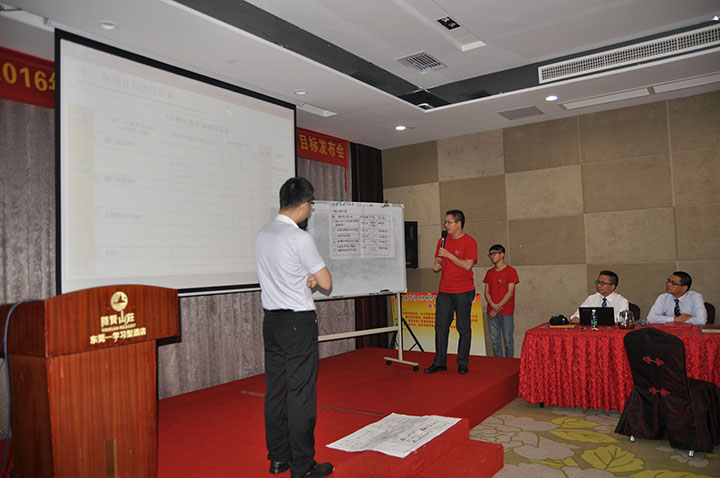 2016年7月31日,東莞市天倬模具有限公司2016年度目標(biāo)發(fā)布會(huì),在東莞麗城假日酒店舉行。天倬模具全體中高管理層,統(tǒng)一穿上了紅燦燦的會(huì)服,氣勢(shì)昂昂地參加目標(biāo)發(fā)布會(huì)。會(huì)議由思博項(xiàng)目組李建新老師與辜慶波老師主導(dǎo)。各部門(mén)負(fù)責(zé)人積極參與,他們明確了自己部門(mén)的目標(biāo),并得到確認(rèn)和落實(shí)。