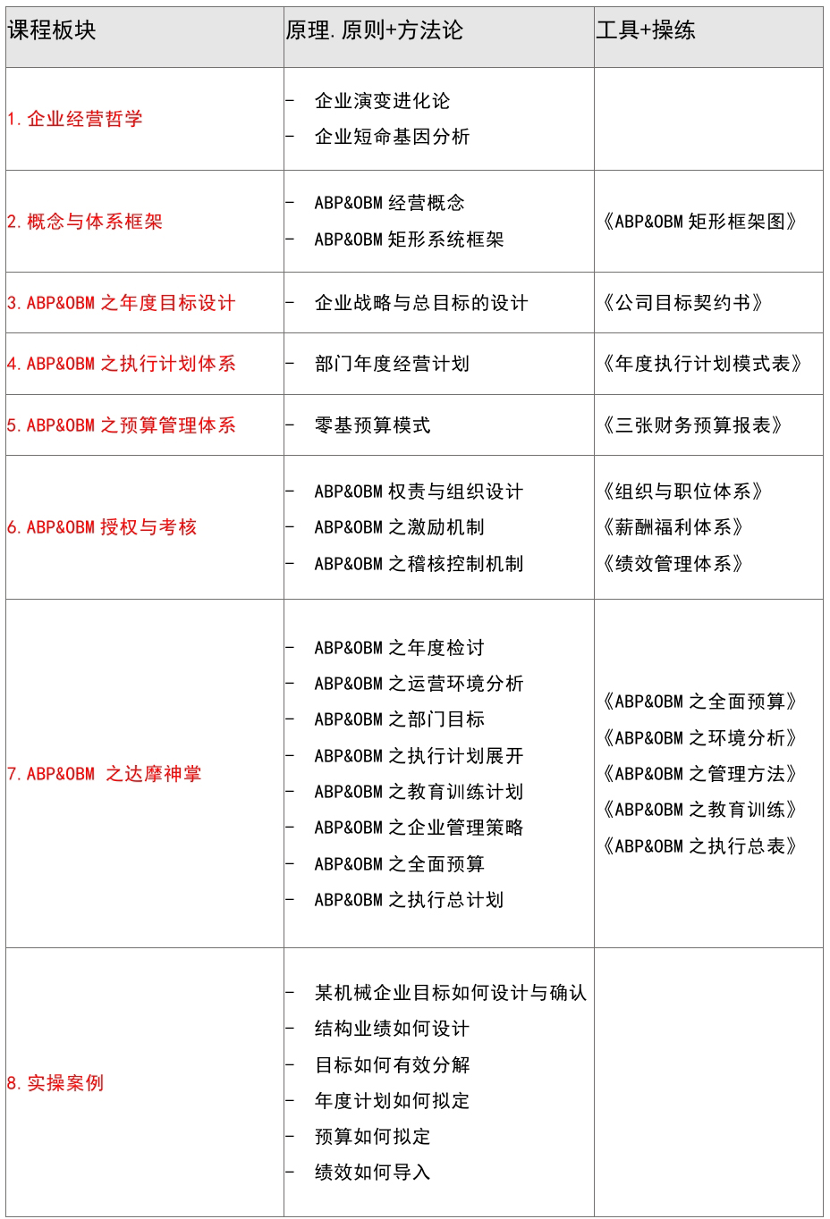 六、課程安排 主題:思博商學院 | 《職業(yè)總經(jīng)理訓練營》系列課程之《年度經(jīng)營計劃與全面預算管理》 時間:2016年10月22日(周六) 9:30-12:00 14:00-18:00 地址:東莞東城設(shè)計師酒店13樓蔚藍廳 (東城萬達廣場斜對面) 聯(lián)系人: 張先生(137-2867-1688) 深圳市思博企業(yè)管理咨詢有限公司 年度經(jīng)營計劃與全面預算管理(ABP&OBM)落地供應商